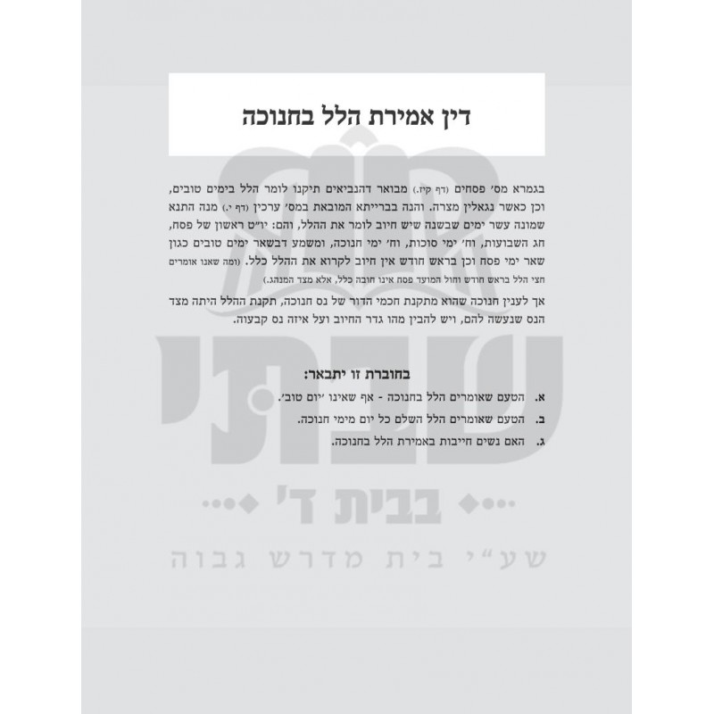 of Hallel), the nature of the Chanuka Hallel